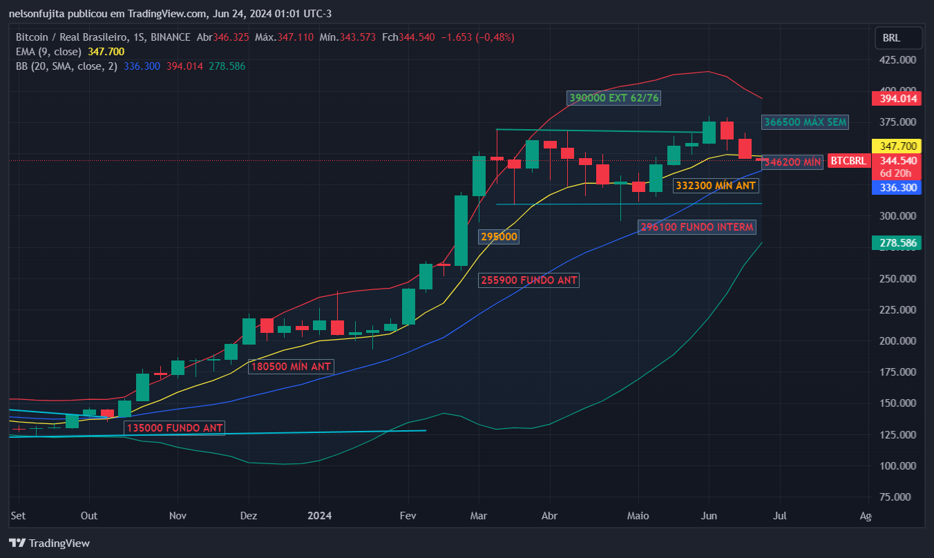 O Ibovespa abriu a semana emalta na segunda fazendo no início deste pregão sua Mínima Semanal nos 118.685 pontos. A partir daí iniciou um bom repique de alta, até encontrar resistências na quinta-feira em sua Máxima Semanal nos 121.606 pontos, onde se localiza o fundo perdido do "canal de queda" dos últimos meses. Refluiu até os 120 mil pontos na sexta-feira e repicou alta novamente até finalizar o pregão próxima da Máxima Semanal, nos 121.341 pontos.